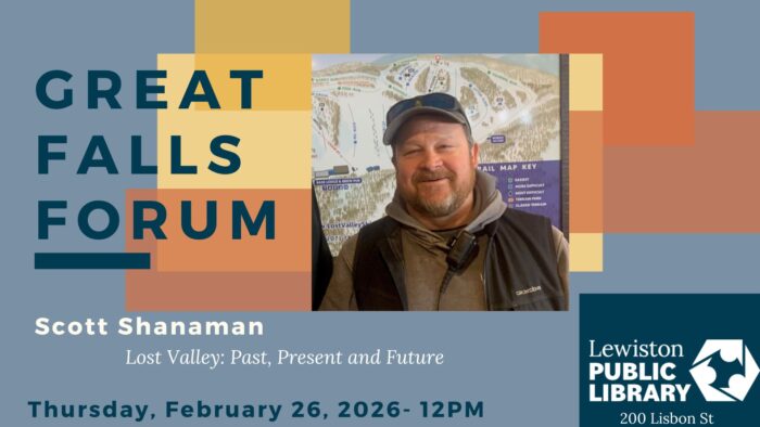 The Great Falls Forum speaker series is co-sponsored by Bates College, Lewiston Public Library, and the Sun Journal. The Lewiston Public Library is located downtown at 200 Lisbon Street at the corner of Pine Street. More information on Thursday’s lecture is available by contacting the Lewiston Public Library at 513-3135 or LPLReference@lewistonmaine.gov.